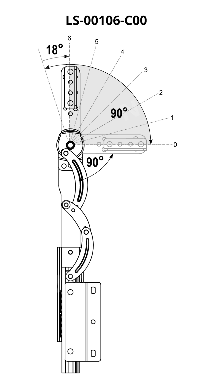 Mechanizm zapadkowy zagłówka LIW-5-105-TT - 90°-180° 6 step