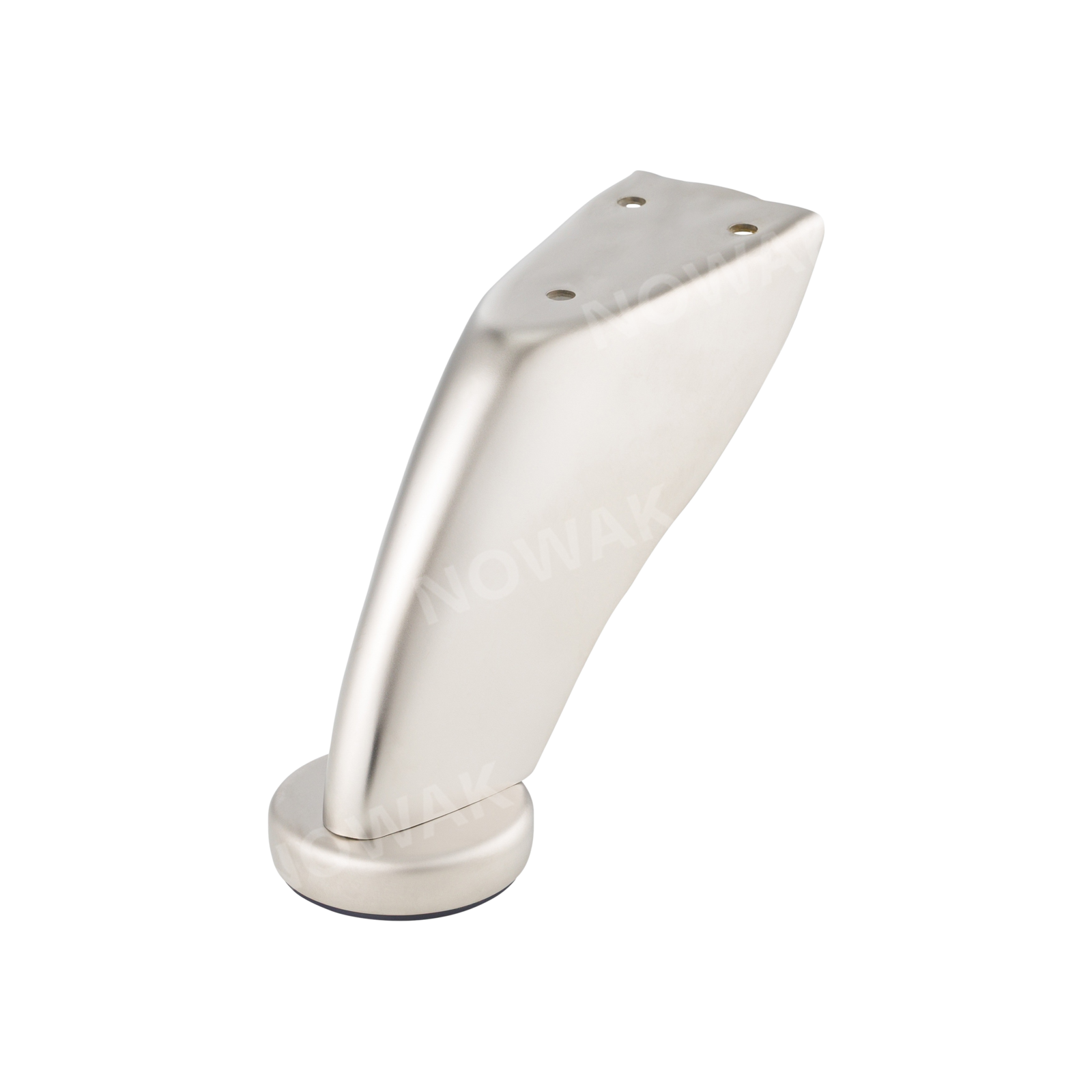 Noga ZF-11 wykonana ze stali, o wysokości 90 mm, z wykończeniem w kolorze satyna nikiel w półpołysku. Profilowana forma zapewnia stabilne podparcie mebla oraz właściwe przenoszenie obciążeń. Niklowa powierzchnia podkreśla kształt elementu i estetykę wykończenia.