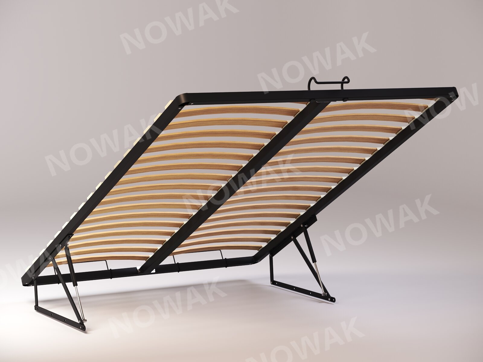 - Kompletny zestaw – ramy sprzedawane z listwami sprężynującymi, trwałymi uchwytami i stoperami zapobiegającymi przesuwaniu się materaca.